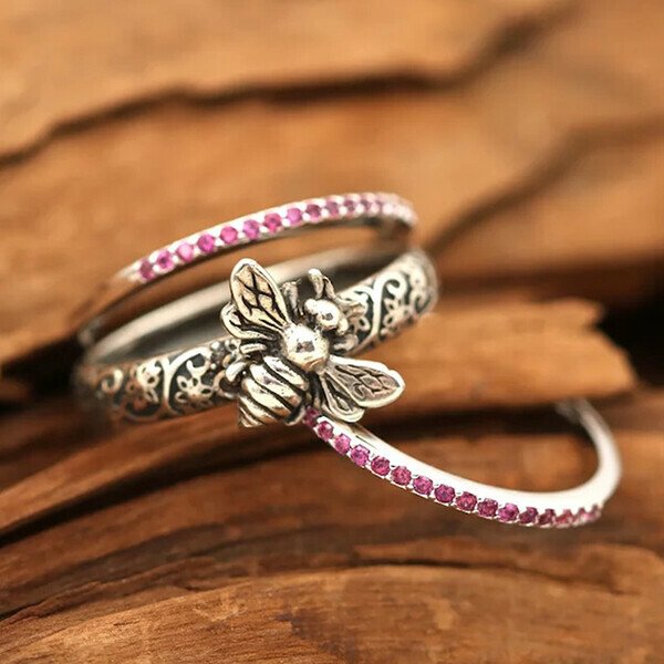 🔥 Last Day Promotion 70% OFF🔥Sterling Silver Retro Insect Bee Set Ring