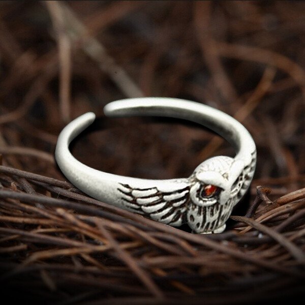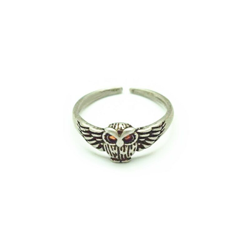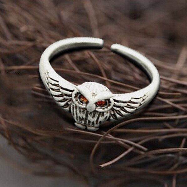 925 Sterling Silver Red Eye Owl Adjustable Ring