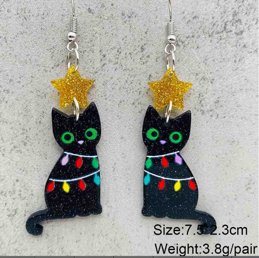 Christmas Black Cat Earrings