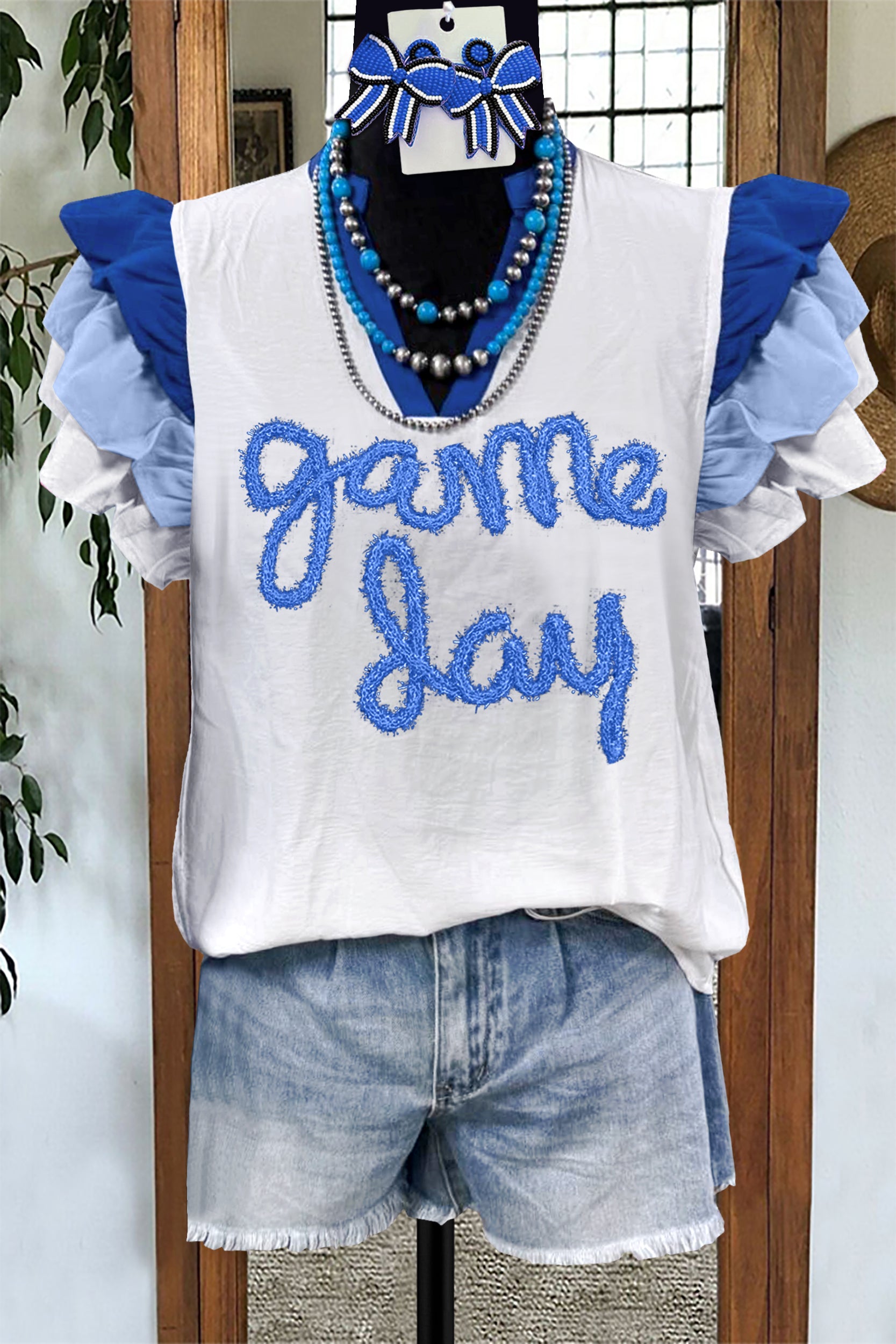 Stay on trend this season in our new classic, v neck top. We especially love the slogan fabric and think this piece will be a new favorite in your closet!
