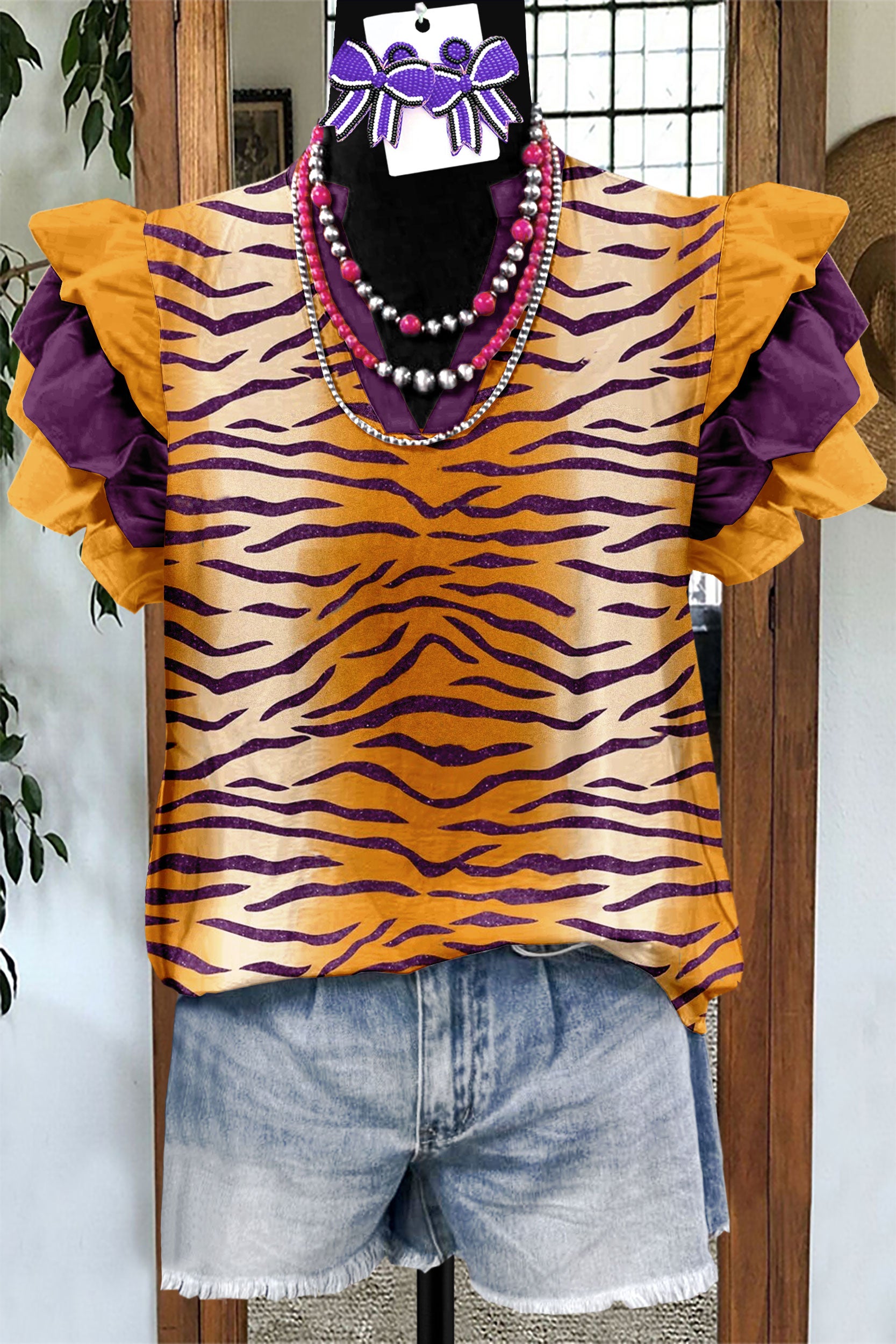 Casual Tiger Stripes Print Flying Sleeve Blouse