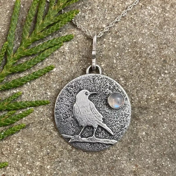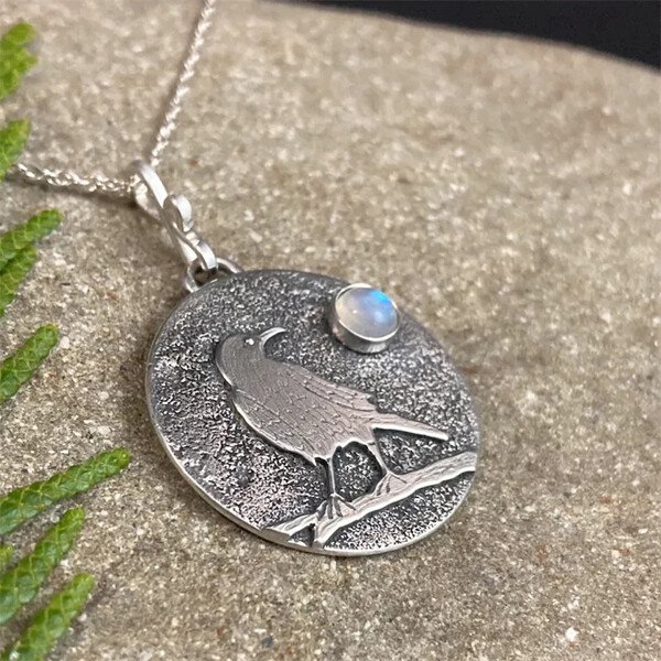 Sterling Silver Bird Signet Moonstone Pendant Necklace