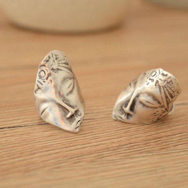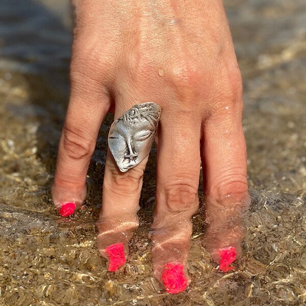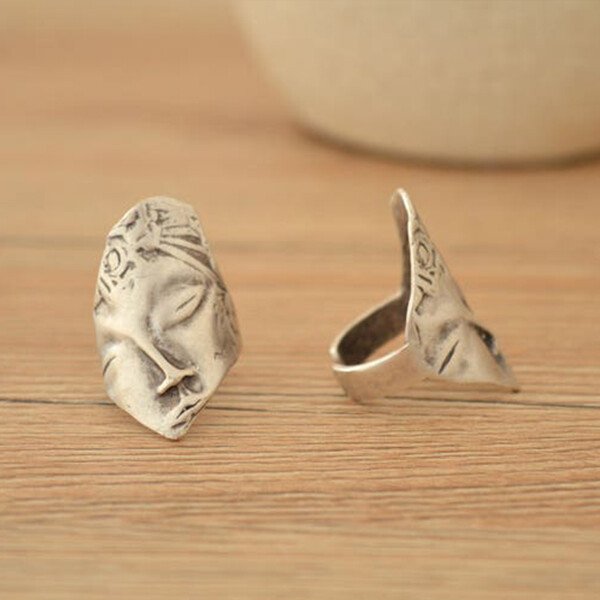 Sterling Silver Greek Goddess Abstract Face Adjustable Ring